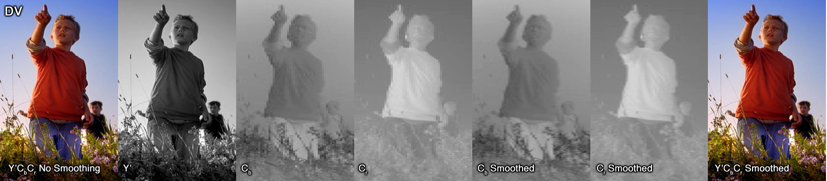 The Apple DV codec does not smooth chroma by default and has no option to turn it on, so the Apple 4:1:1 keying filter was used to smooth the chroma