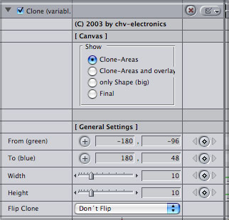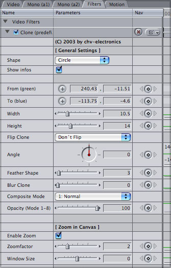 When Christoph of CHV asked me for suggestions for FCP plugins it took me exactly 2 seconds to reply. "I want a Clone tool like the one found in PhotoShop". Now a short time later I am working with two Clone tools from CHV. The Pre Defined Clone tool with built in shapes and a Variable Shape Clone tool that lets you create an exact custom shape with up to 24 settable points to outline a shape.